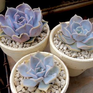 ほぼリラシナ3姉妹。 ゴールドマニーは名前通り少し黄色がかってる。葉の形も違う。 その交配種は…うーん美人♪(´ε` )