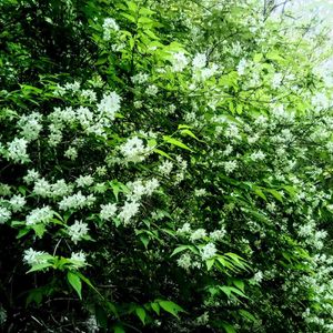 山奥自宅から奥山へ 大好きな場所にて ヒメウツギが1本の大木のような樹木花に見える あまりの豪快さに、遠くから眺めたり下から見上げたり たっぷりたっぷり伸びて気持ち良さそう