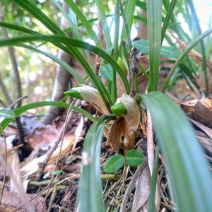 山奥自宅から奥山へ 大好きな場所にて ギンランが咲いている直ぐ側に2株 これはこれはきっとキンランでは まだ花をつけてなくても葉だけでテンション上がる