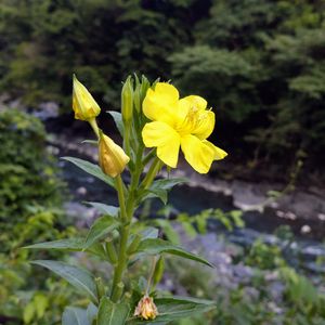 山奥自宅集落山道にて 治山工事や災害復旧工事が山奥自宅集落に入るといつも気にかけることがある ①よその土が入る ➁よその足が入る ➂よそのタイヤが入る……等 そして、?!という見慣れない花が咲いた時、ドキドキする これは山奥で生きていい花?と……