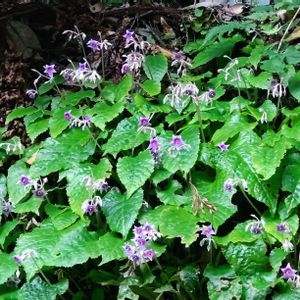 山奥自宅すぐそこ山道にて 山壁一面にイワタバコがビッシリって場所がある 真夏の暑さをなぐさめるように 涼し気に静かに控え目に