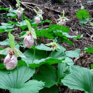 山奥自宅裏山伝いに歩いて同じ山奥暮らしのサトコさんちの裏山にて あれがクマガイソウ群生 こんな山ん中に こんな山の斜面に こんな花が咲くなんて 自然はアメージング
