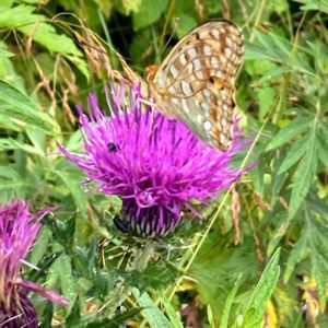 おはようございます😊 今日のお花 💠 アザミ 💠 ① 💠ミヤマコアザミ💠 キク科 アザミ属 εїз ウラギンヒョウモン❀ εїз ❀ 7月15日 伊吹山での出会い タテハチョウ科ドクチョウ亜科ヒョウモンチョウ族に属するチョウ ②③ ④ 💠 ノアザミ 💠 昨年4月 熊本 球磨川堤防での出会い ⑤ 💠アメリカオニアザミ💠 通勤路沿いやあちこちでの出会い ִֶָ. ..𓂃 ࣪ ִֶָ ʚଓ་༘࿐ 5枚あります🌿💜 見てくださいね😊🎶💕︎ ✳️伊吹山で多くの花々に出会ったのに投稿するのを忘れてる汗汗😥