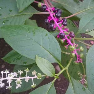 7/26のヨウシュヤマゴボウ。 色付いてきました。 お花も付いてます。