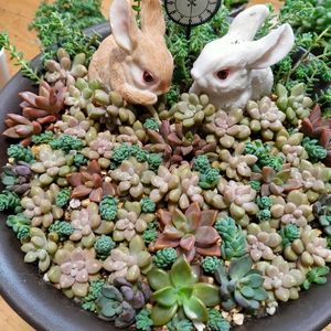 寄せてみたかった姫秀麗とブロンズ姫。 やっと実現😆💞 準備した鉢が思ったより大きかったので、うさぎ&ゆかいな仲間たち(セダム達)に協力して頂きました🤗