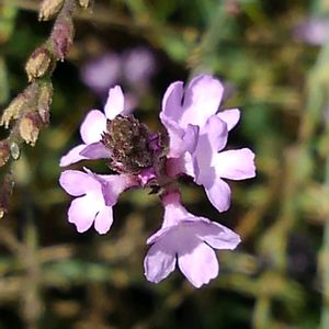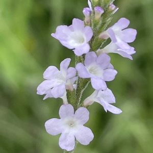 クマツヅラ科クマツヅラ属 1〜3 クマツヅラ(熊葛) 30〜80㌢ 多年草 在来種 花は穂状花序が1〜3個 小さな小さな花 数年前にこの公園がオープンした時にこの辺りには無かったこの花を草原の中に見つけた時は本当に嬉しかった、僅か10㌢位でした。今年はこんなに大きくなり会えました。儚いくらい華奢です。多分これで一株です。花の大きさは4、5㍉ 4、5 アレチハナガサ(荒地花笠) クマツヅラと花は似ています。 こちらは帰化種、在来種のクマツヅラに比べるとなんて力強いことか! ここには葉が茎を抱くダキバアレチハナガサ(帰化種)もありそれはもっと力強く、なんだかヒールの趣き (2025 7/14、2024 8/30に投稿しています)