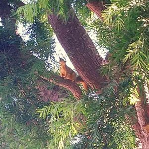 見つけれるでしょうか? 写真の真ん中。 左に顔、右にしっぽのリスさんがいます😳 職場から