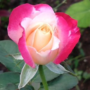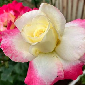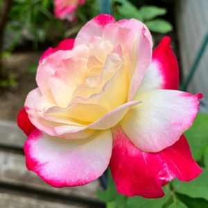 【ダブル・ディライト】花弁に赤い縁取りは少なくフリルのように咲きました。