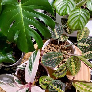 マランタレウコネウラ マランタレモンライム クテナンテルベルシアナ 水差し発根から土に移行させてみた三人衆。 葉っぱがしょんぼりしてビニールかけたり葉水しまくったりで2週間ほど経過。 やっと安定してくれた模様😌ホッ😊