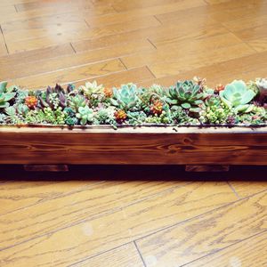 木製プランター (旦那さん作・70cm位) 寄植えしてみました☘️