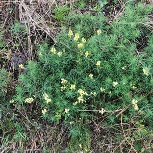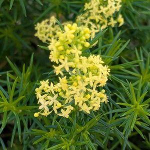 キバナカワラマツバ 別名:タカネカワラマツバ アカネ科・ヤエムグラ属 標高の高い所に自生してたので膝下の丈でしたが低地ではもう少し大きくなるようですが低地では白い花の咲くカワラマツバがありますね。