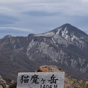 猫魔ヶ岳 裏磐梯 福島県 残雪残る登山道で お花は咲いてませんでしたが 山頂から素晴らしい景色が見えました。 右の山は磐梯山です。 なかなか素敵でしょーー!アハハ