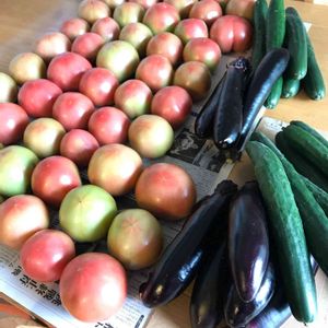 トマトトマトトマト(∩^o^)⊃━━━━━☆🍅.*・。 父が趣味で作ってる🍅 『トマト食べきらんがよ〜 送ろかい? 近所にでん分けっやればよかが〜』と それにしてもすごい数(*˘︶˘*).。.:*♡ 数えると新聞紙いっぱいで52個💦 大食いの私でもさすがに食べれない🤣💦 ご近所さんにお裾分け🍀 青いものまで収穫してあるので追熟させて頂きます😊💕 子を思う親心 いくつになってもありがたい🍀