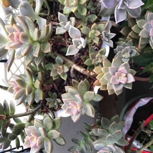 こんばんは🌙.*·̩͙.。★*゚ 今日は無事に人間ドッグも終わり… 日中暑さが半端なく 天気雨で多肉棚びっしょり💦 1年前からするとかなり増えたような… ブロンズらしくないブロンズ姫😊💓 新芽の色がピンク色で可愛くなってきました🍀 一緒に植えていたセダムはすべて枯れ 朧月とブロンズ姫だけ残ってます。 暴れ具合がいい感じ… 触ると枝や葉が折れるのでこの場所から動かせなくなりました。 今日も一日お疲れ様でした。