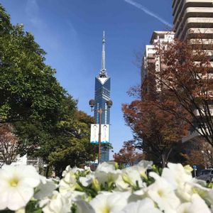福岡は快晴! 福岡マラソンファンラン無事に終わりました。 ペチュニアと福岡タワーといまそら🍀