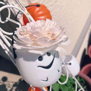 100均で購入した、小さなオバケバケツに、カットしたバラを。咲かせたいのに切らなければならない、薔薇のなぞ。笑