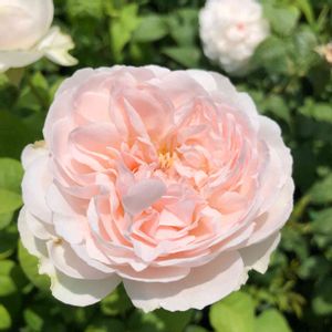 アッサンブラージュ ワインやシャンパンに安定した味わいと、上質な風味を生みだす製法「アッサンブラージュ」から命名。 幾枚もの白い舟弁(花びら)が重なるカップ咲き、のちゆっくりと開いて中心から、緑をおびた花芯(グリーンアイ)が視線を誘う。バラ特有のダマスク香にフルーツ の上品な香りがある。耐寒性もあります。 花径:約8cm 樹高:1.2~1.3m 花季:四季咲 その他:豊かな香りのバラです