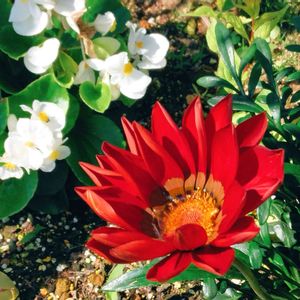 色鮮やかで、大輪の🍀ガザニア・ガズー・レッドウィズリング🍀が咲いてます💗 赤の色に深みがあって、とても綺麗です🤗💕