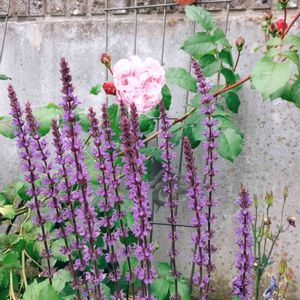 おはようございます😊 🍀サルビア・カラドンナ🍀が咲いてます💜💜💜🌿 これまでは、薔薇の近くにキャットミントを植えていましたが、花が咲くのは3年の寿命を10年以上延ばして、ついに咲かなくなってしまいました🥹 花の色が好きなので、もう一度探してみましたが、みつからなかったので、サルビアをお迎えしました💗 花穂の色も、スーッと延びる姿も気に入ってます🤗💕