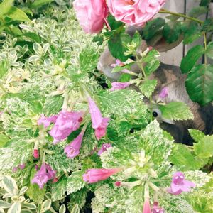 アップルミントに可愛い花が咲いてます😊 葉を触ると、爽やかな香りがします💞