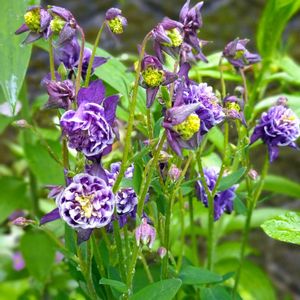 地植えの姫オダマキ、細々と開花 二輪しかツボミなかったけど アラ(∩´∀`∩)アラ