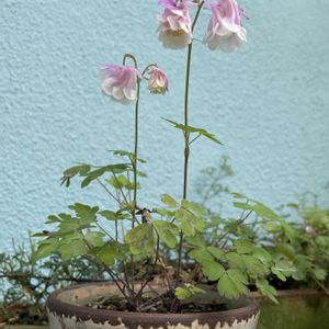 ◯姫オダマキ◯ 可愛い姫オダマキ、咲きました〜💕 昨年の春、紫とピンクを購入したのですが、一鉢ダメになってしまってどちらが咲くかなぁと思っていましたが、ピンクでした😊💕 この色合いが大好きです。 姫オダマキと風鈴オダマキは微妙で何で区別するんだろう😅💦