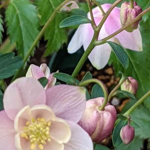 暖かい陽射しの中でお花たち輝いています✨✨ 秋植え球根はクロッカスが一番乗りに咲いて来ました🧡 パンジービオラも雪の中を乗り越えて沢山咲いています🌸🌼💜 クリスマスローズもやっと姿を整えてきました🥀🥀✨ フォロワーさんのオダマキを見て〜私もいいなぁ♪♪と思って欲しくなりました❣️ ホームセンターでヒメオダマキを見つけ仲間入りしてました🎵 ミックスで得した気持ちの私…混ざって薄紫の優しい色にならないかな?は素人考えですね(笑) 今日も平穏な一日でありますように〜♡♡