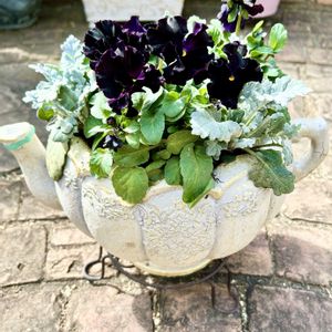 小さな寄植え ポット🫖型コンテナ メゾンドビオラ 魔笛 ダスティミラー