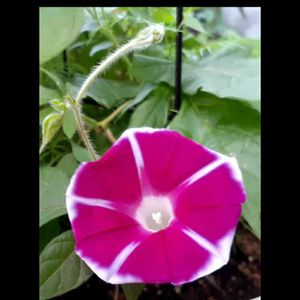 今朝の朝顔 四色八輪咲きました ピンク色の花が二輪 初めて咲きました 花色 花姿は それぞれ少し違うようです