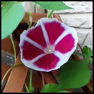 今朝の朝顔です 葉っぱの奥で咲いてました 三色四輪咲きました