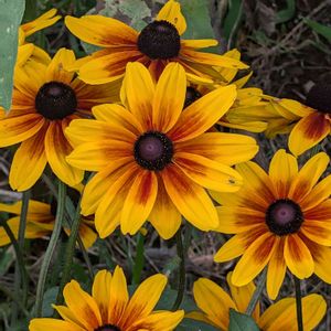 【ルドベキア「アーバンサファリ」(ルドベキア・ヒルタ)】 北アメリカ原産、キク科一年草 分枝がよくコンパクトな草姿、多花性で華やかな花姿が魅力の品種。 花はキク科でよく見られる頭花で、直径約2~10cm、舌状花と筒状花で構成される。 筒状花は非常に小さく中央で200個以上が集まり円錐体をつくり、濃い茶色もしくは紫みを帯びた色をしている。 殆ど黒色に見える筒状花と豊富な花色の舌状花との対比が美しい。 草丈:40~50cm 開花時期:7月~9月 花色:緑・赤・桃・橙・黄・黒 吉本花城園@防府市にて
