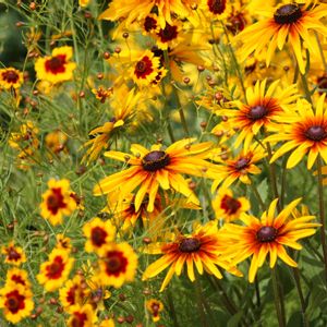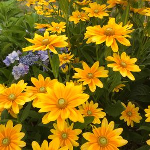 ハルシャギクとルドベキアが花壇で隣り合わせ🌼 どちらのお花も同じ色で出来てますね♫ カーニバルのように賑やかです😊🎶