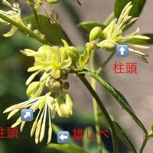 数年前に見つけた谷戸山公園のアキカラマツ ここ数年は花芽を付けると思った頃に刈られてしまうことが多く 今年やっとボランティアの方の努力で花が咲くまで守られめでたく花が咲きました。🙌 萼は早く落ち雌しべと雄しべで構成され花弁はありません。 その後の変化見たいところですが この暑さ この花は今どんなでしょう(^◇^;)