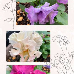 ☆庭のお花達☆ ❶パンジー ゆみ ラッフル (3色) フリルが可愛いです〜😍 ❷シュウメイギク 今短い茎に初めてのお花が👀 ❸ベゴニア(2色) ちょっとモリモリになって 来てますー 冬越し出来るかもねー ❹ラナンキュラスラックス 夏越し出来、新芽が出て来た ので、嬉しい😆