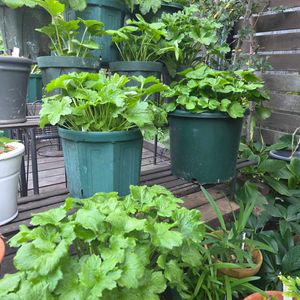 *ラナンキュラスラックス* ラックスさん、成長して来ました。車庫南側に置いていたんですが、前に家が立ち、すき間からしか日があたらなくなっていました。半日は日があたるデッキに移動して成長を願います。