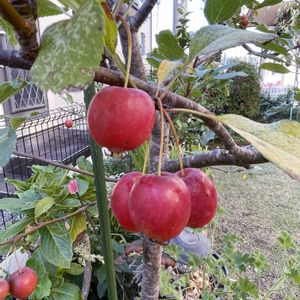 朝晩 寒くなりました 姫りんごの実が赤くなってます 鉢植えで 育ててます ラナンキュラス ラックス 今年は夏越しできたみたい💕 植え替えた方が良いのかな?