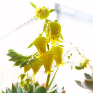 去年のシクラメン カンザキアヤメ 茎ブロッコリー先の一つと 春菊 エケベリアにお花が🌼
