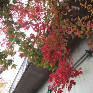 散歩の途中で♪ 日当たりなのか気温の差なのか 木によって異なる紅葉が 綺麗なグラデーションに。