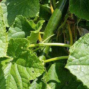 ジャーン~🤣 朝日を浴びて収穫前のキュウリさん隠れても見つかってるよ🤩