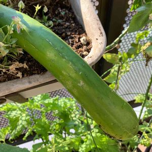 こんな巨大化したきゅうりがお花のプランターまで伸びて草花の根本に横たわってました🙀きゅうりの収穫はおわったと思ってたのでびっくり‼️