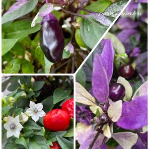 🌶観賞用トウガラシの実⚫️🟣🔴 カリコは、💜花から、まるでナス🍆の様な長い実⚫️🟣になりました。 パープルフラッシュは、パープル💜花から艶々の丸い黒紫の実⚫️🟣になり、次第にえんじ色⚫️🔴に変化します。 濃紫色🖤💜の葉色から白🤍と薄紫色💜🤍が入ってきました。 🌶の赤い実🔴は可愛らしい白い花🤍を咲かせて次々に実🔴になります😄 観賞用トウガラシは天候不順☔️の日々の中でも順調に育ってます❣️