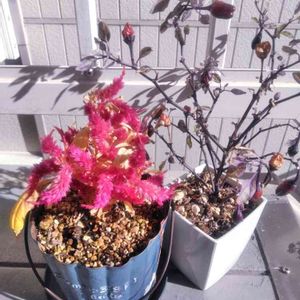 夏の寄せ植え(8/18pic)を秋用に植え替えました🍁 ガラリと変身です! まだ頑張ってるのは残して、セロシアとコウシュンカズラを新たに迎え入れました😊 ペニセタムが紅葉してとってもいい感じなのですが、背も伸びちゃったのでなかなか定位置が決まらず、最近やっとこの場所に落ち着きました🌿