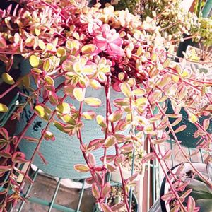 先日憧れのポーチュラカ マジカルキューティーをお迎えしました。多肉ちゃんのようなぷっくらとしたピンクの斑入りのはつぱ、可愛い💕 今朝花が咲きました、可愛い💕