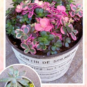 ポーチュラカ マジカルキューティー 1年前の親株から挿し芽でもりもりに育ちました😃 班入りでピンク色してたのに、緑になっちゃった笑