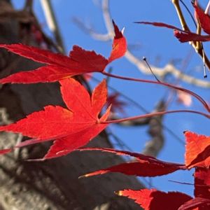 昨夜は、土星食🪐見ましたか? 土星🪐ちっこ過ぎ☁️🌙 今日の図書室に行く途中 「山装う」です ②高いイチョウに 最後の一葉 o ヘンリー 青空に紅葉が映えますね🍁
