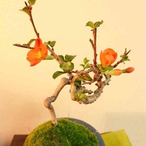 皆さんおはようございます🌞 こちらは朝から雨が降っています 今日の写真は先日植え替えたお気に入りのミニ長寿梅と草を付けた茅舎です👍 画像① 長寿梅 樹高6センチ 樹幅8㎝ 足元3・5㎝ 鉢1・6号