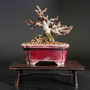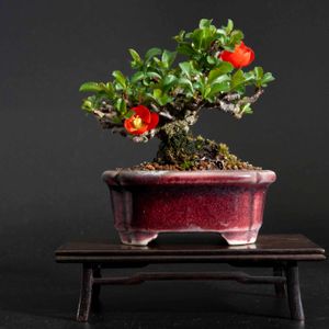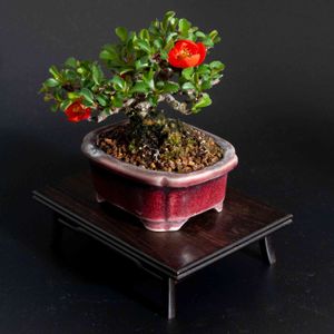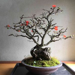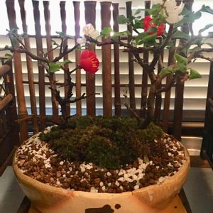 冬は盆栽なのです❗ 長寿梅が咲きだした🌸 いい感じの石付になってきたな😎