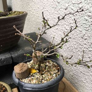 長寿梅 先日までの2鉢と違い、芽が動き始めています。 苦手な樹種はこんな違いに不安感を煽られます。