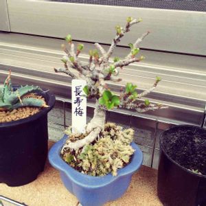 こんにちは。盆栽daysです。先日、携帯がぶっ壊れまして、グリーンスナップは無事かっと心配したところ、案の定、元の場所にログインできなくなりました。\(^-^)/ コードを発券してないとログインできないってどういうこと( `Д´)/携帯がいきなり壊れたら無理じゃん!他の方法でログインさせてよ!インスタとプリンテストはできたよ!とまあ💢怒りまくりなわけです。しょうがないね。 ということで、気持ち新たに日々是盆栽としてやっていきます。またフォローして頂けると大変うれしい( ´∀`)です。 始まりは長寿梅から。