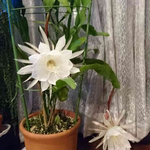 こんな嵐の夜に…。 今年三度めの開花は2つ同時に、特大サイズでした💗むちゃくちゃ強引に部屋に入れてます😅